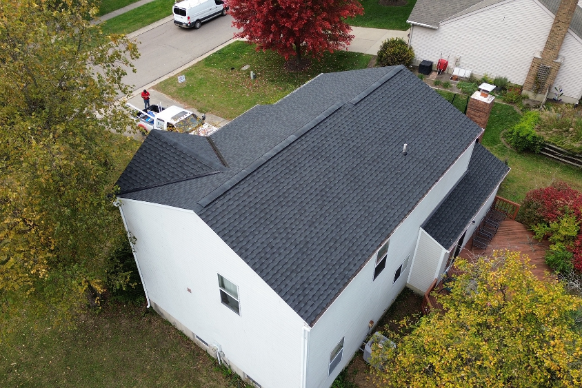 We completed a roof replacement project for the Elzarka home in Mason, Ohio. For this roof replacement we used GAF UHDZ Shingle in color Charcoal Gray.