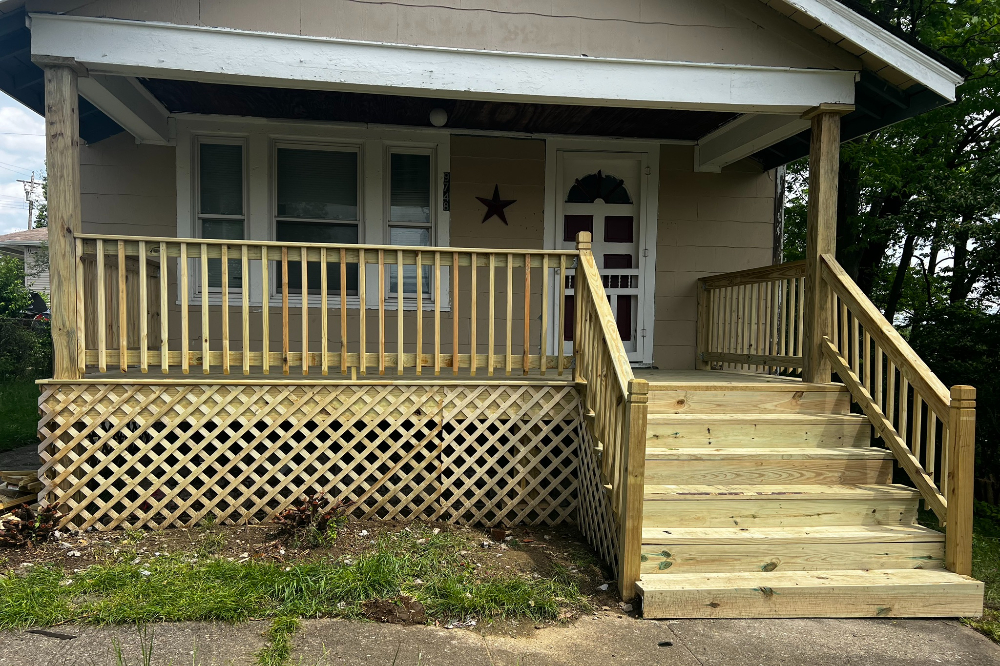 Our team replaced the front porch deck with treated wood that included the rails and steps for the Roseman home in Cincinnati, Ohio.